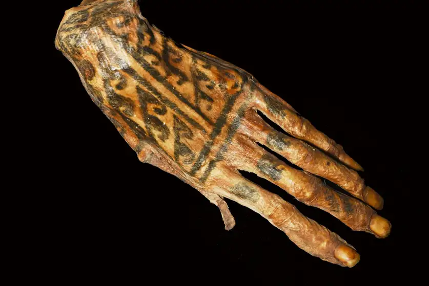 A 1,200-year-old mummified hand from the Chancay culture of Peru resurfaced in the news. Its intricate, dark blue tattoos are masterpieces of pre-Columbian art.